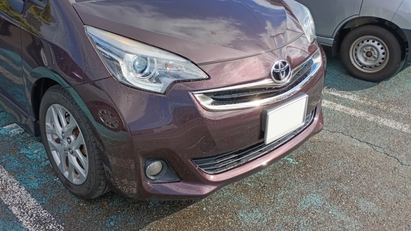 トヨタのラクティスでフロントバンパーが破損してしまい交換で入庫しました。