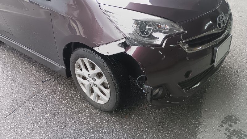 石川県 金沢市 車 フロントバンパー 傷 割れ 新品 交換