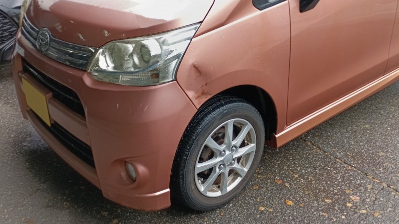 石川県 金沢市 車 ダイハツ ムーヴ フェンダー 傷 へこみ 板金 塗装 修理