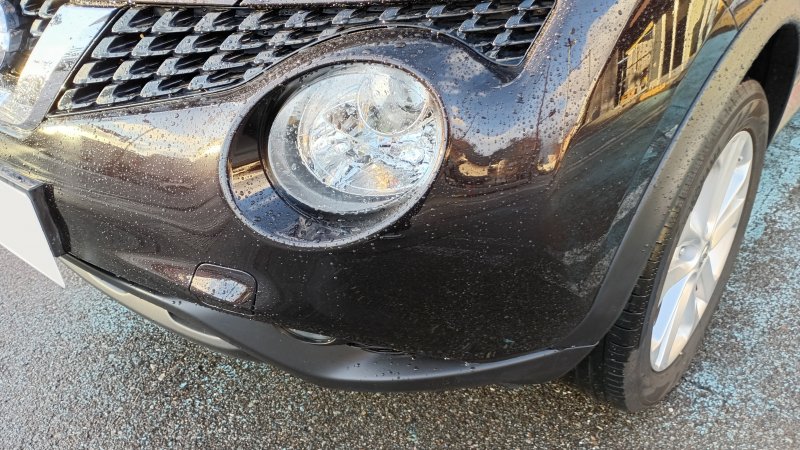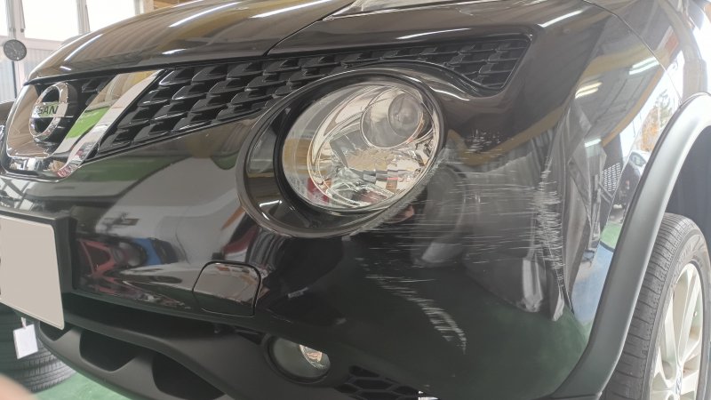 日産のジュークでフロントバンパーの修理で入庫しました。