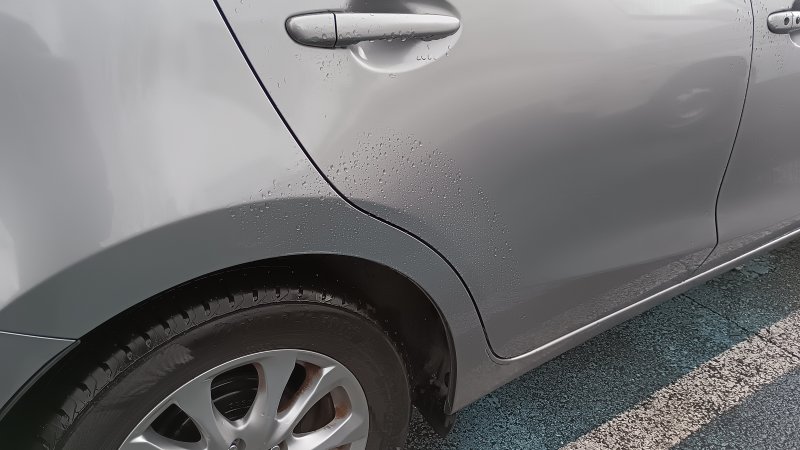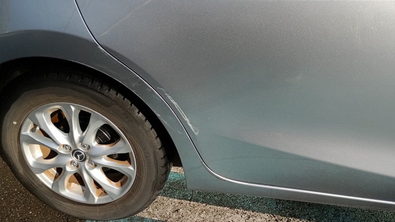 石川県 金沢市 車 マツダ デミオ 右リヤドア 傷 磨き