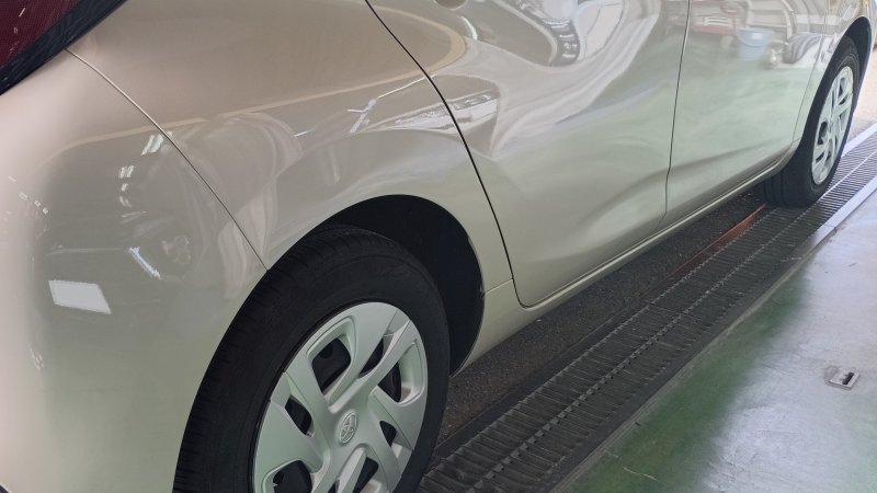 石川県 金沢市 車 トヨタ アクア 右後ろ 傷 ヘコミ 板金 塗装 修理