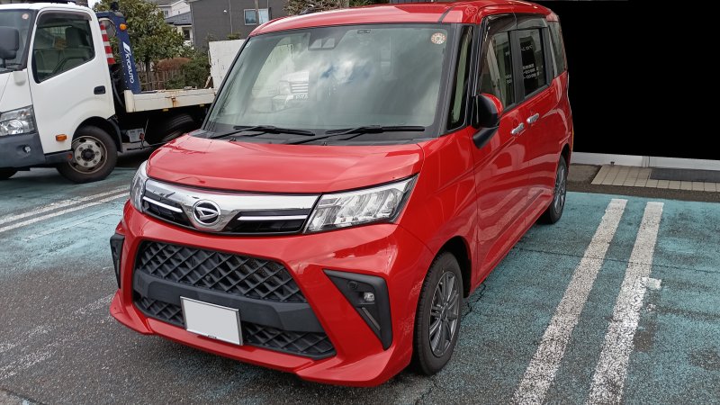 石川県 金沢市 車 ダイハツ タント フロントバンパー 傷 へこみ 割れ 新品 部品 交換