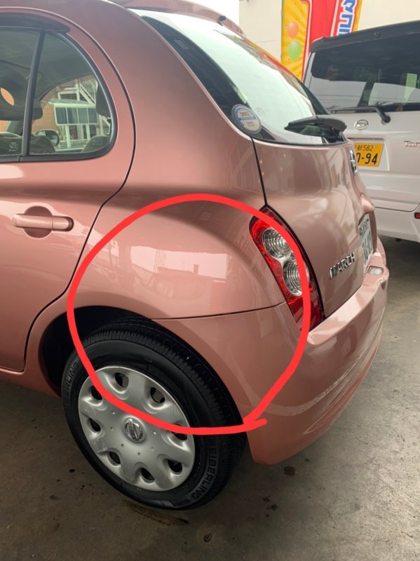 京都府 長岡京市 マーチDBA-AK12 左クォーター鈑金とリヤバンパー交換