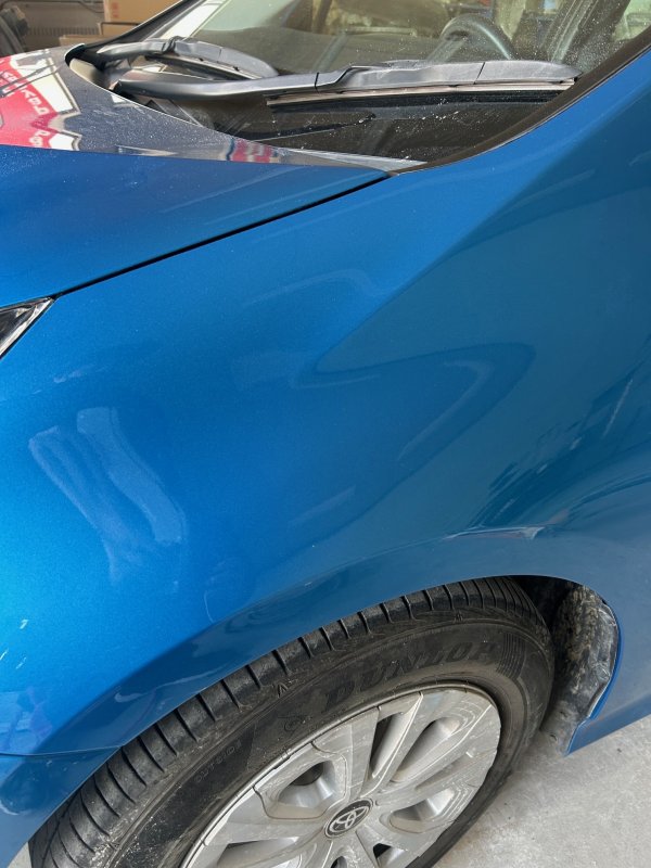 トヨタ・プリウス 左フロントフェンダー・へこみ修理の依頼を頂きました。