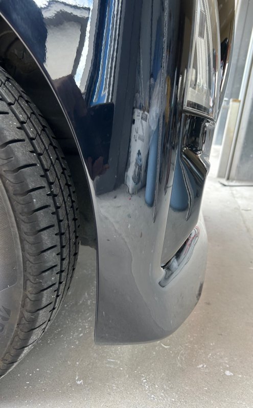 フロントバンパー・割れ・擦り傷の損傷でしたが、修正作業にて対応いたしました。
