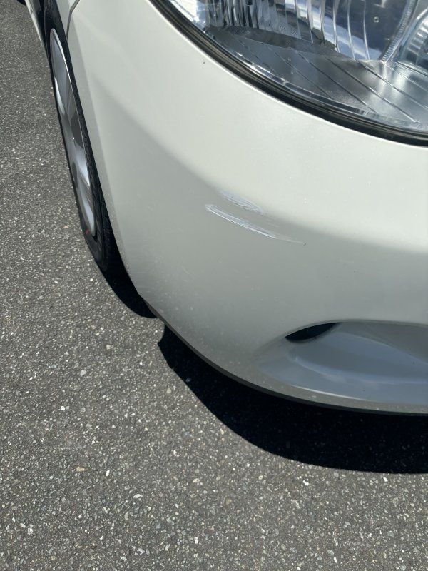 日産ティーダにお乗りのお客様よりフロントバンパーを壁に擦って傷が出来てしまう直しのご相談でお越し頂きました。