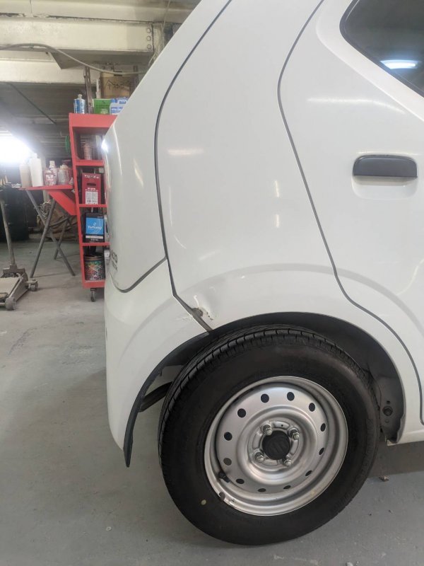 鹿児島県薩摩川内市|アルト(スズキ)のキズ・へこみ直し事例(リアフェンダー リアバンパー)