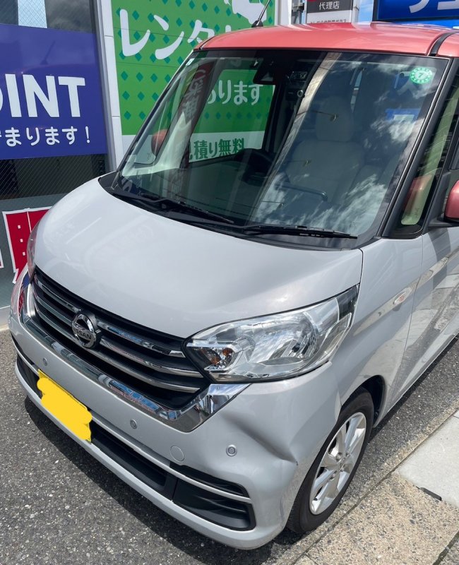 日産・デイズ フロントバンパーへこみ傷の事例です。