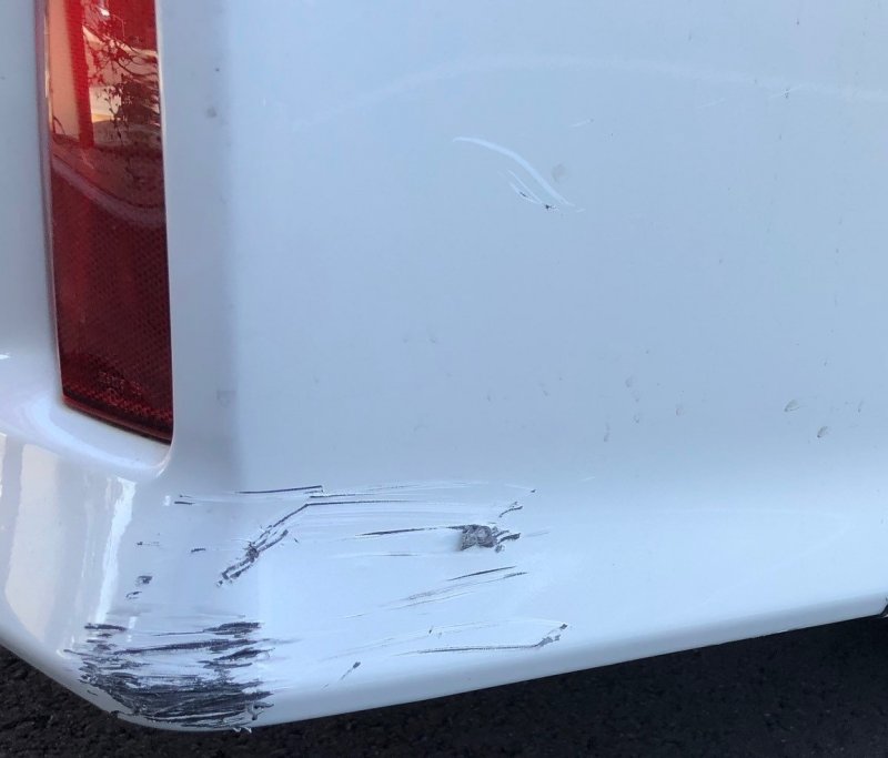 左折時に誤ってガードレールでフロントバンパー左角を擦ってしまい、当店のホームページを見て、修理の依頼をいただきました。