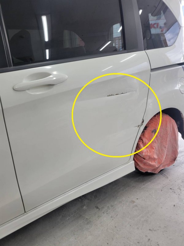 岡山県倉敷市|ヴォクシー(トヨタ)のキズ・へこみ直し事例(リヤフェンダーのガリ傷の修復です。)