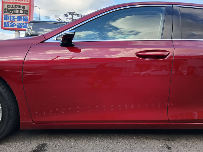 左フロントドアに凹みができてしまったレクサス ESの修理事例です。 写真ではほとんど分からないほどの小さな凹みでしたが、鈑金塗装で丁寧に修理を行いました。