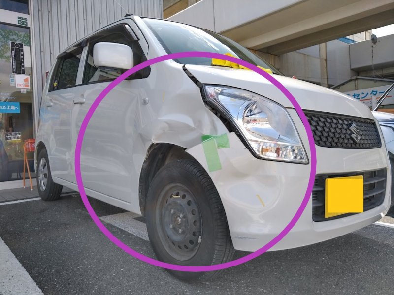 福岡県福岡市西区|ワゴンR(スズキ)のキズ・へこみ直し事例(フロントバンパー フェンダー ライト交換)