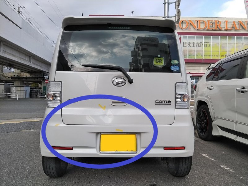 福岡県福岡市西区|ムーブコンテ(ダイハツ)のキズ・へこみ直し事例(リヤゲート リヤバンパーへこみ修理)