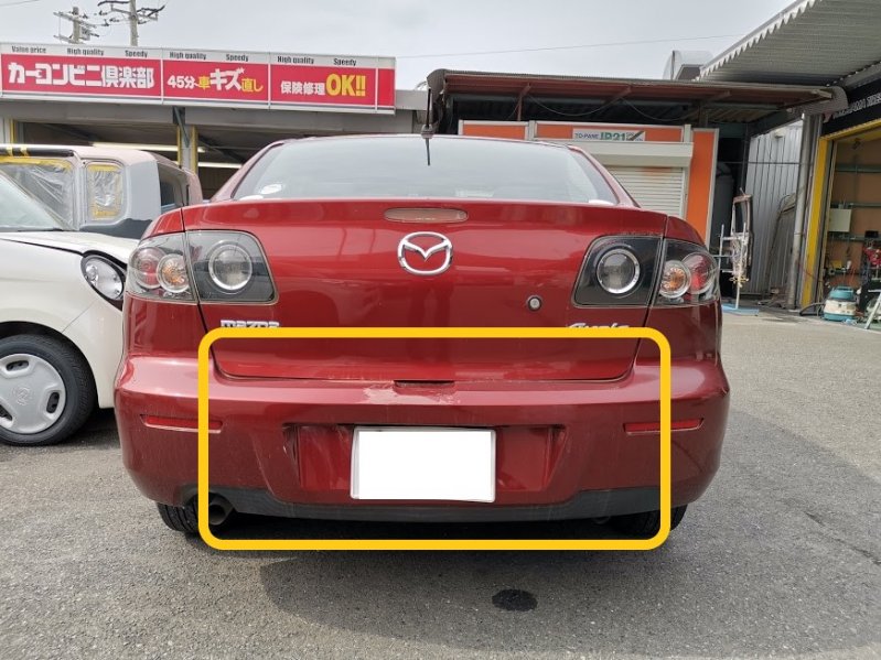 福岡県福岡市西区|アクセラ(マツダ)のキズ・へこみ直し事例(リヤゲート板金 リヤバンパー交換)