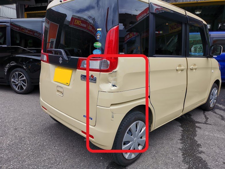 福岡県福岡市西区|ワゴンR(スズキ)のキズ・へこみ直し事例(リヤゲート バンパーへこみ 交換保険)