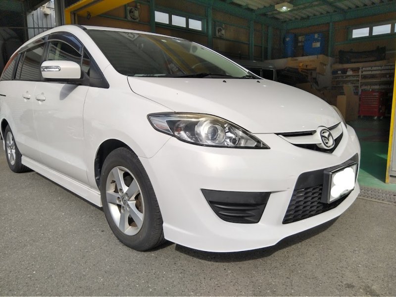 マツダ プレマシー フロントバンパーが外れています💧 下側を引っ掛けてしまい、バンパーが変形したことによるものですね。