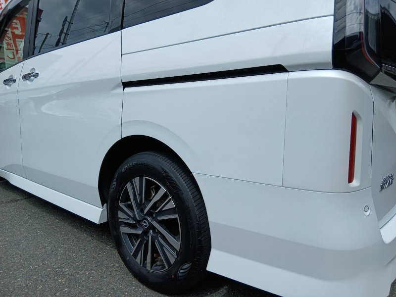 福岡西小戸店で、セレナの左側面(スライドドア・クォーター・リアバンパーまで)の修理を行いました。クォーターパネルは新品に張り替え、約2週間で仕上げています。保険修理での対応です。