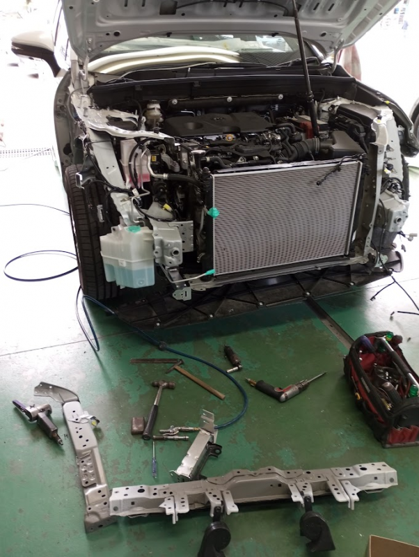 フロント周りを大きく損傷し、前回り全体を修理する必要がありました。