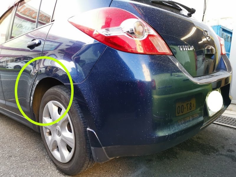 糟屋郡久山 ティーダ リヤドアクォータキズ・へこみ保険対応
