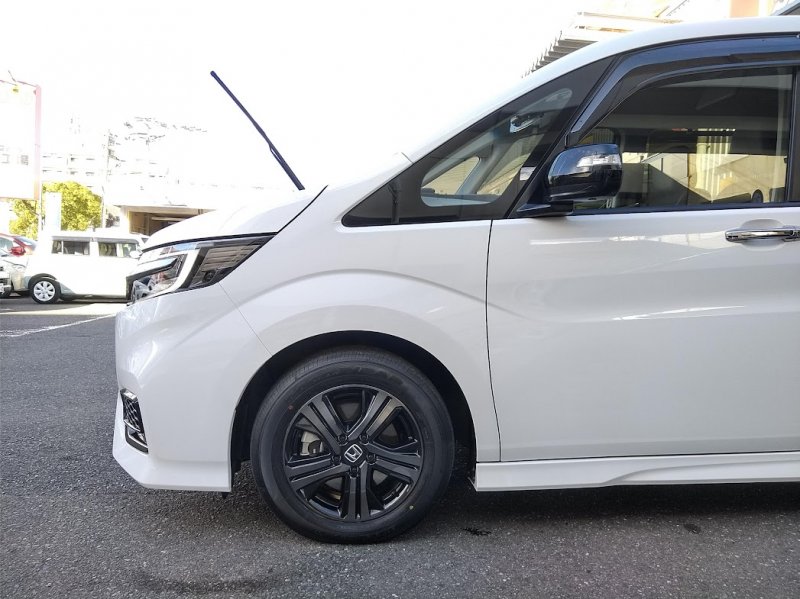 ホンダ ステップワゴン 新型のお車です!フロントバンパーが外れかかっており、タイヤの上のフェンダーという部分も、ぽっこり凹んでおります(T_T)