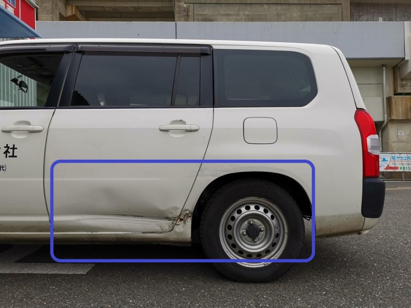 福岡県糟屋郡久山町|プロボックス(トヨタ)のキズ・へこみ直し事例(リヤドア クォーター交換 保険修理)