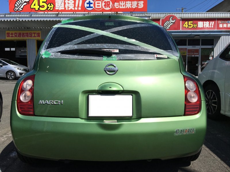 日産 マーチ リヤガラス割れで修理のご依頼です。