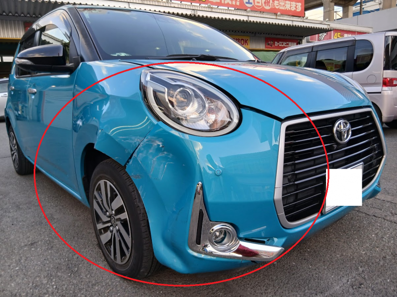 福岡県糟屋郡久山町|パッソ(トヨタ)のキズ・へこみ直し事例