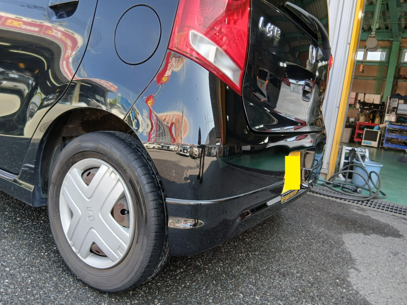 カーコンビニ倶楽部 久山店にて、ホンダ ライフのリアバンパー修理を実施しました。