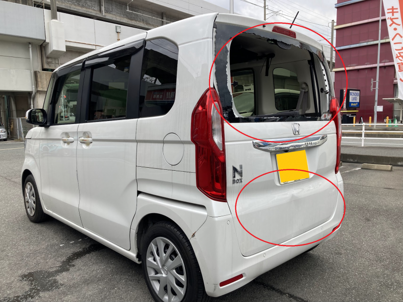 福岡県糟屋郡久山町|NBOX(ホンダ)のキズ・へこみ直し事例(リア事故修理)