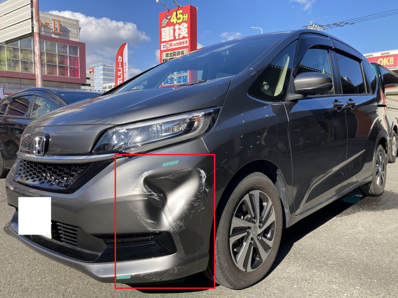 フロントバンパーを損傷してしまったホンダ フリードの修理事例です。 今回は保険修理を適用し、傷ついたバンパーを修理するのではなく、新品の部品に丸ごと交換する方法をご提案しました。 お車を預ける期間を短くしつつ、新車同様の美しさを取り戻した事例です。