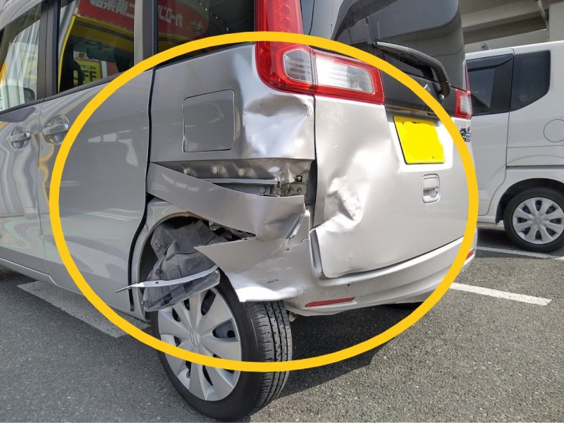 スズキ スペーシア 左リヤの大破でご入庫です。
