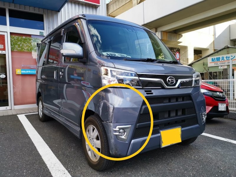 福岡県福岡市城南区|アトレー(ダイハツ)のキズ・へこみ直し事例(フロントバンパー交換保険修理)
