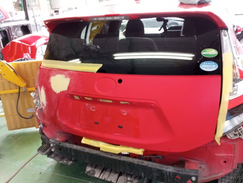 - リアハッチ修正中 塗装前です