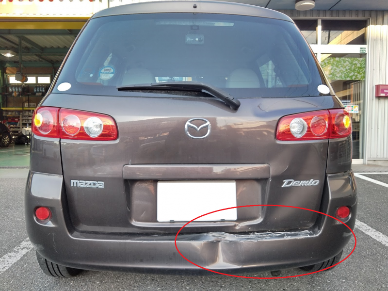 リアまわりを損傷したマツダ デミオの修理事例です。
