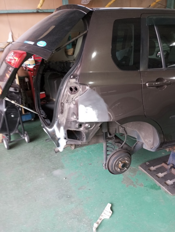 マツダ デミオ リア事故修理事例(骨格修正・中古部品活用)