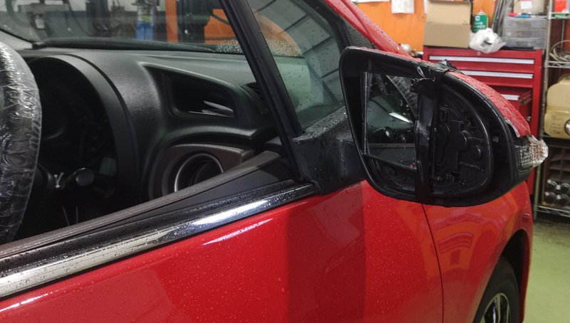 ホンダ フィット 右サイドミラー交換 小山市 栃木市 結城市 古河市 野木町