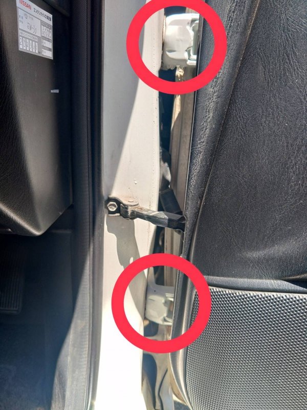 経年劣化により運転席ドアが下がってしまい、上に持ち上げないと閉める事が出来なくなってしまい当店にご相談に来店されました。