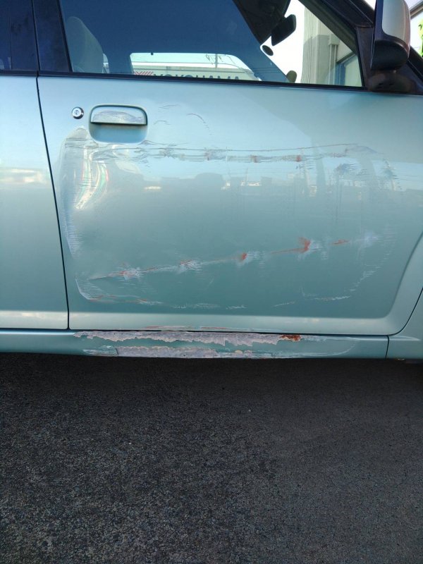 サイドシルがかなり深く凹んでいて大掛かりな修理となりました。
