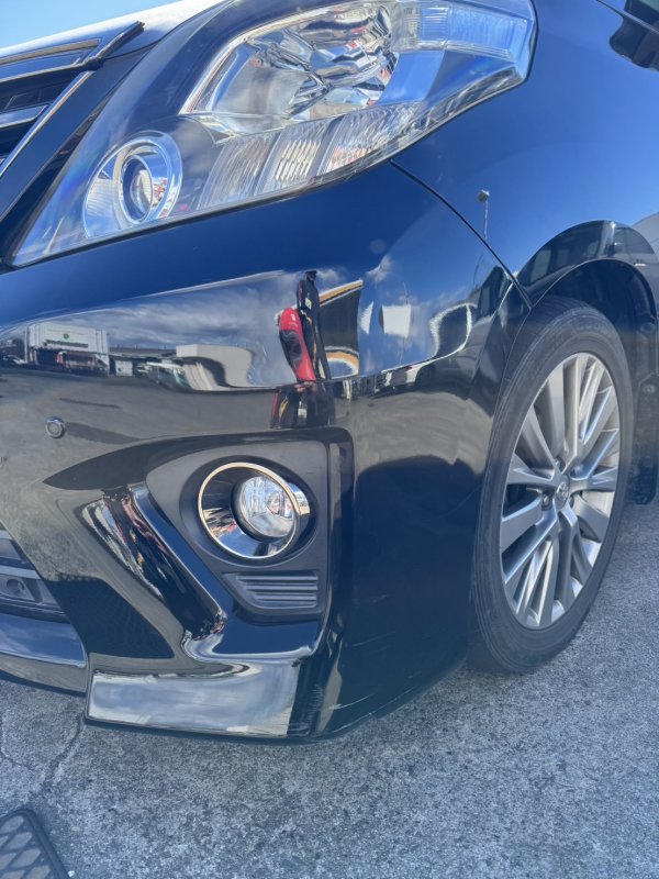 まずはキズの状態をしっかりと確認し、バンパー表面の損傷部分を整えながら下地処理を行います。その後、塗装面がきれいに仕上がるよう細かな調整を行い、ボディカラーに合わせて塗装を実施しました。アルファードのような高級ミニバンは塗装の質感や色味が特に重要になるため、周囲との違和感が出ないよう慎重に作業を進めています。最終的に磨き仕上げまで行い、キズがあったことが分からないほど自然な状態に仕上がりました。