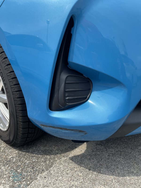 今回、障害物にフロントバンパー左下側を擦ってしまい、バンパーにスリキズがついてしまったトヨタ・アクアが入庫しました。