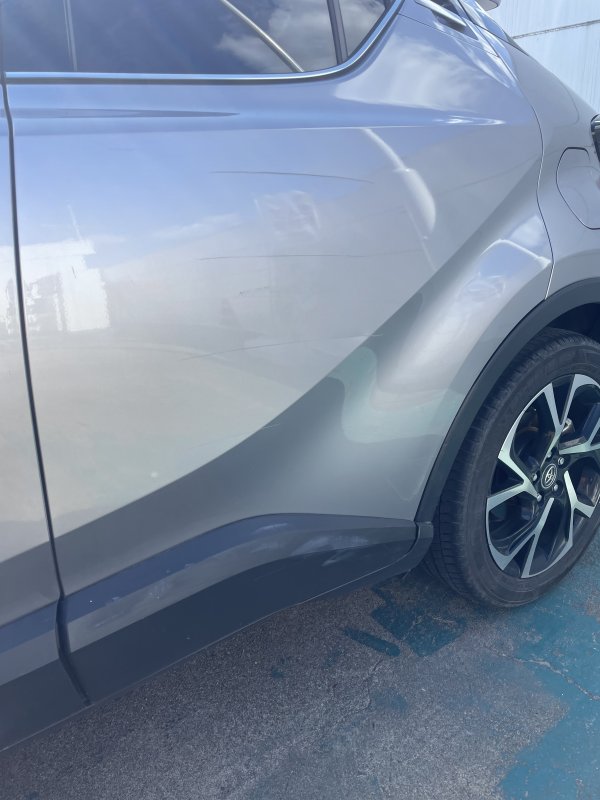 小山市 C-HR リアドアスリキズ ヘコミ 鈑金 樹脂部分キズ