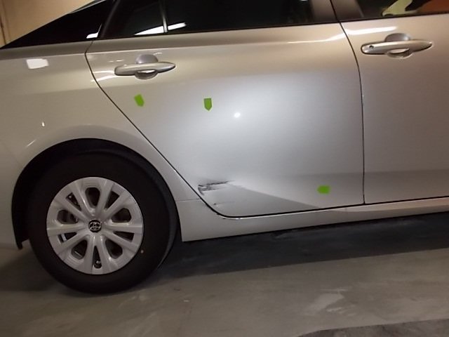 兵庫県尼崎市|プリウス(トヨタ)のキズ・へこみ直し事例(リアドア・リアフェンダー鈑金塗装)
