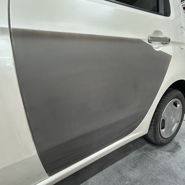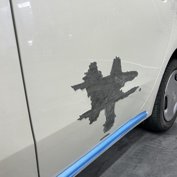 他社ではドア交換の話もあったようですが、当店では板金塗装でも修理ができるのでお客様とお話して、修理代もお安くなるので板金塗装でお受け致しました。