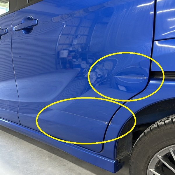 リヤドアと後ろタイヤ横の深いへこみを修理 鳥取県米子市|デイズルークス(日産)のキズ・へこみ直し事例