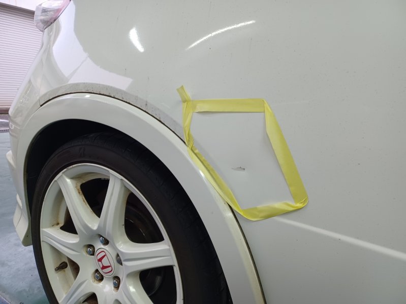 富山県 中新川郡立山町 ホンダ シビック 左フロントフェンダー キズ ヘコミ 鈑金 塗装 ペイント 早い 安い 綺麗 親切 丁寧 車の修理