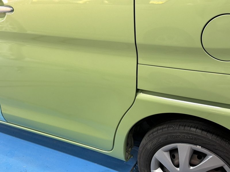 熊本県宇城市|タント(ダイハツ)のキズ・へこみ直し事例(左後ろドア、左後ろタイヤ前(クォーター) ドア下 サイドステップ キズ ヘコミ 鈑金 修理)