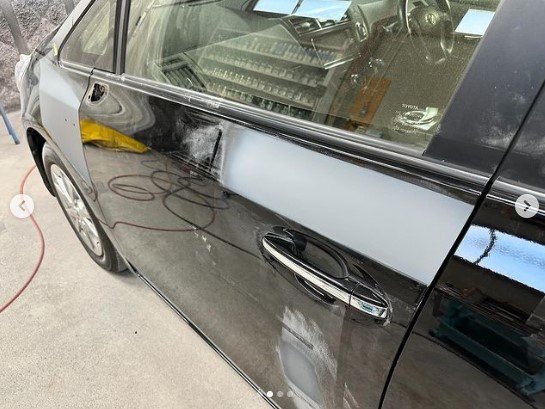 | 修理の箇所・サービス内容 | 左前ドアパネル タイヤ上(フェンダー) キズ ヘコミ 車 修理 鈑金 |