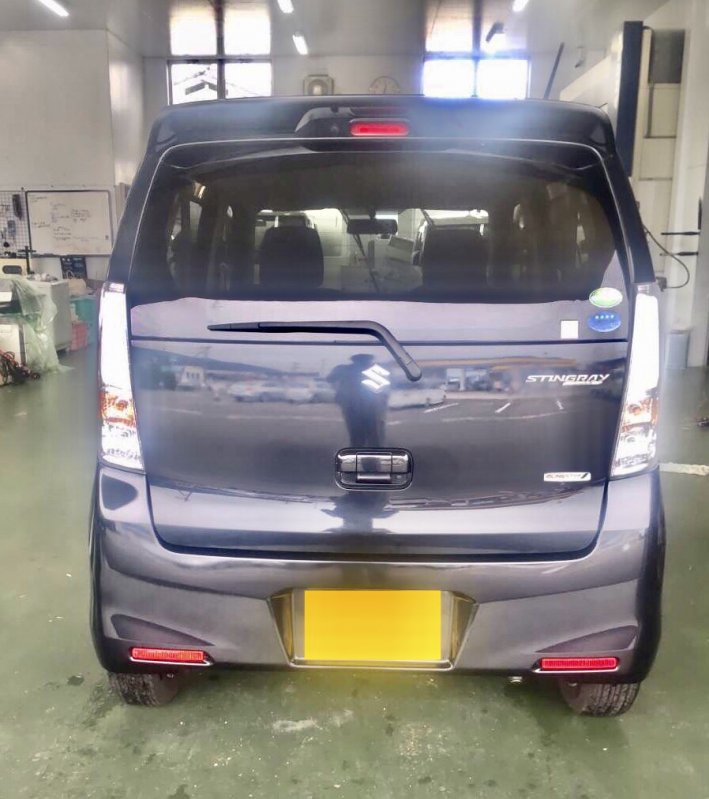 佐賀県鹿島市|ワゴンR スティングレー(スズキ)のキズ・へこみ直し事例(①リアバンパー(リサイクルパーツ) ②バックドア(リサイクルパーツ) ③左テールランプ(リサイクル) ④左クウォーターパネル(修理))