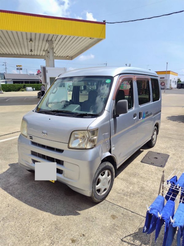 佐賀県鹿島市|ハイゼット カーゴ(ダイハツ)のキズ・へこみ直し事例(フロントバンパー交換 左ヘッドランプ脱着 左フロントフェンダー交換 左フロントドア修理)